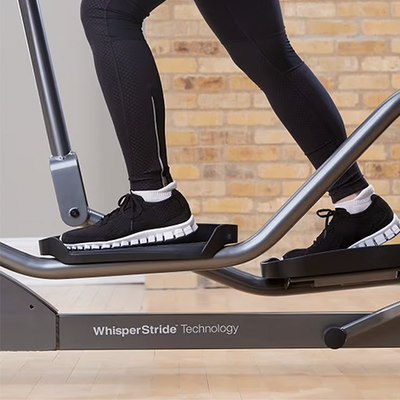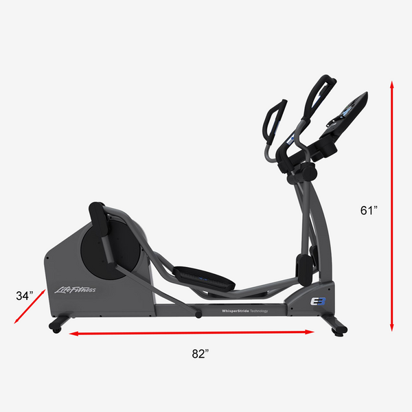 The Life Fitness E3 Elliptical Cross -Trainer with WhisperStride technology is nearly silent and has features that keep workouts interesting and motivating. It’s a sleek, attractive home cardio option for exercisers of all fitness levels looking for a low-impact, total-body workout.