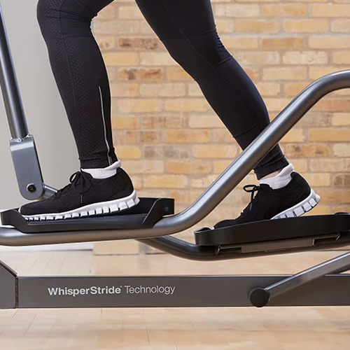 The E5 system is engineered to adjusts the stride electronically from 18” to 24” (46-61 cm), so you can choose from a variety of workouts that are challenging and effective. Exercisers of different heights can enjoy a smooth, natural and comfortable ride. Cushioned, antislip pedals ensure secure footing and comfort.