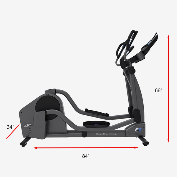 The Life Fitness E5 Elliptical Cross-Trainer is a versatile home exercise machine for effective total-body workouts. The stride adjusts from 18" to 24" with the push of a button and multigrip handles let exercisers work different muscle groups. The smooth and natural feeling ellipse path of the E5 Cross-Trainer is based on years of biomechanics research.