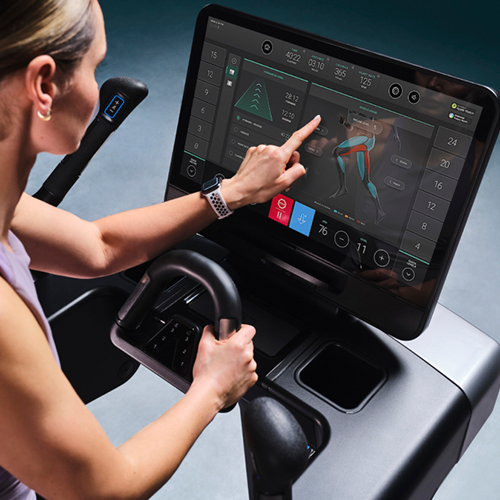 Intelligently target and activate specific muscle groups in a single tap. Symbio Incline Elliptical’s unique technology allows exercisers to hit personalized goals and fine tune their workouts. Through innovative use of incline, as well as both forwards and backwards motion, the elliptical workout becomes more focused and effective than ever before.