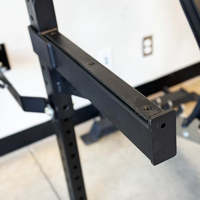 Keep yourself safe when you lift. Partner or not, spotter arms are designed to take a beating and catch your bar if you fail a rep. The top of the spotter arms are lined with UHMW wear strips to protect the knurling of your bar.