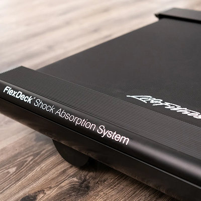 FlexDeck Shock Absorption System reduces knee and joint stress, and the dual-zone console's built-in device holder lets you create your own workout experience.