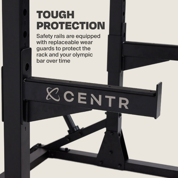 Safety rails are equipped with replaceable wear guards to protect the rack and your olympic bar over time.