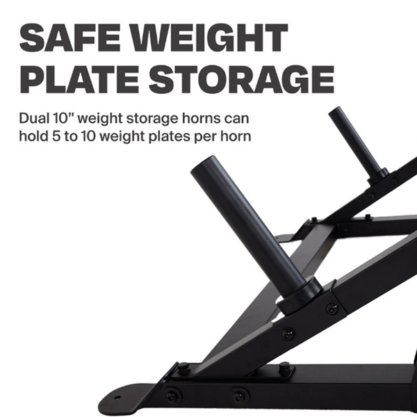 Dual 10" Weight storage Horns can hold 5-10 weight plates per horn
