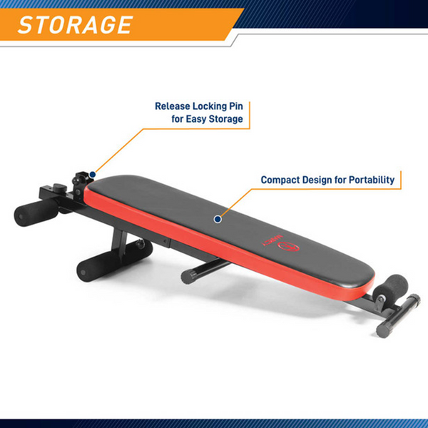 The locking pin allows you to easily fold the bench and keep it in storage after you work out. This board can also be brought anywhere you like, thanks to its compact design.