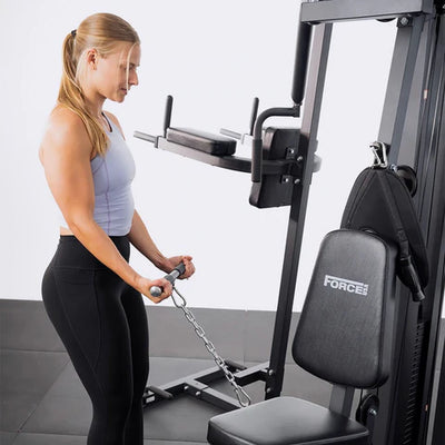 Boasting a 198 lbs (90 kg) pin-loaded weight stack, the Multi Gym 4 caters to all training levels. The user-friendly pin selection and high-quality steel shrouds around the weight stack don't just offer safety; they promise durability for years of intense workouts. This gym is built to withstand the test of time and the rigour of daily use.