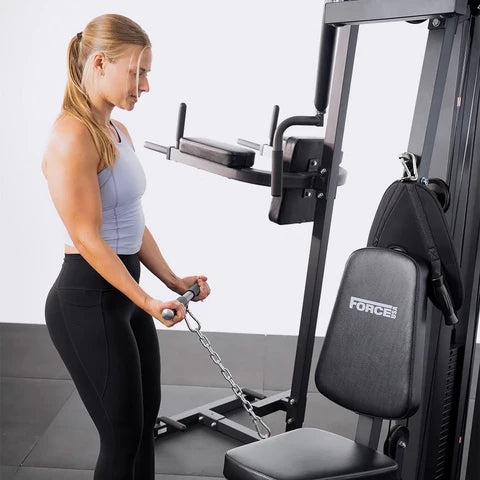 Crafted not just as a piece of equipment but as a comprehensive fitness solution, the Multi Gym 4 is perfect for commercial environments and enthusiastic home gym users alike. With stations for push-ups, dips, knee raises, low rows, abdominal crunches, pec flies, leg presses, and leg curls/extensions, this gym offers a complete body workout. Each station is designed to target specific muscle groups, allowing you to sculpt and strengthen your body efficiently and effectively.