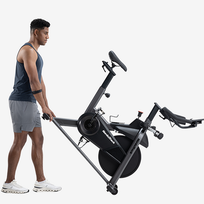 Maximize your space with the front-mounted transport wheels that make it easy to move the bike into the ideal location for working out, or to move it out of the way when you’re done.