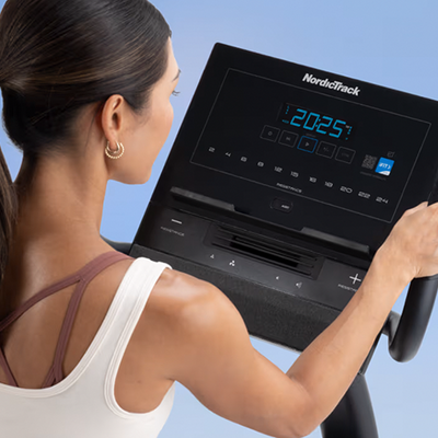 Train for hills, flats, and descents. The NordicTrack G LE Upright Bike prepares you for the real world. Built for comfort, it comes with a wide cushioned adjustable seat and wide pedals with adjustable straps. The console is built for ease-of-use with one touch buttons and a 5” LCD display to view your metrics.