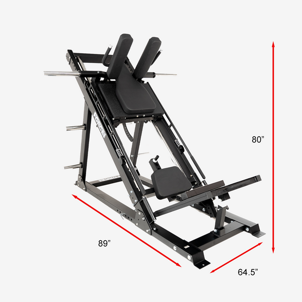 The Force USA Ultimate Leg Press & Hack Squat Combo is engineered to develop explosive lower body strength and solid legs. Features a 45 degree angled design that combines a leg press, hack squat, forward thrust, and calf raise into one lower body strength training system!