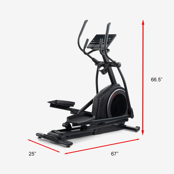 The Pro-Form Carbon EL Elliptical offers a smooth, comfortable, low-impact workout that increases cardio and muscle strength. This elliptical, features an easy-to-use console with Quick Touch Handle Controls and a 5” high contrast display that shows metrics, including speed, incline percentage, distance, and estimated calories.