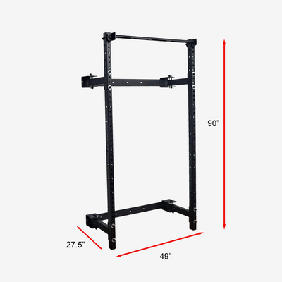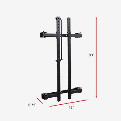 Just like a Murphy Bed, this wall-mounted Murphy Squat Rack with Pull-Up Bar gets tucked away when not in use. The fold-in design operates on four pins to store away. While this may look like other horizontal folding racks on the market, we've made various improvements and still hold the original patent for wall-mounted folding racks.